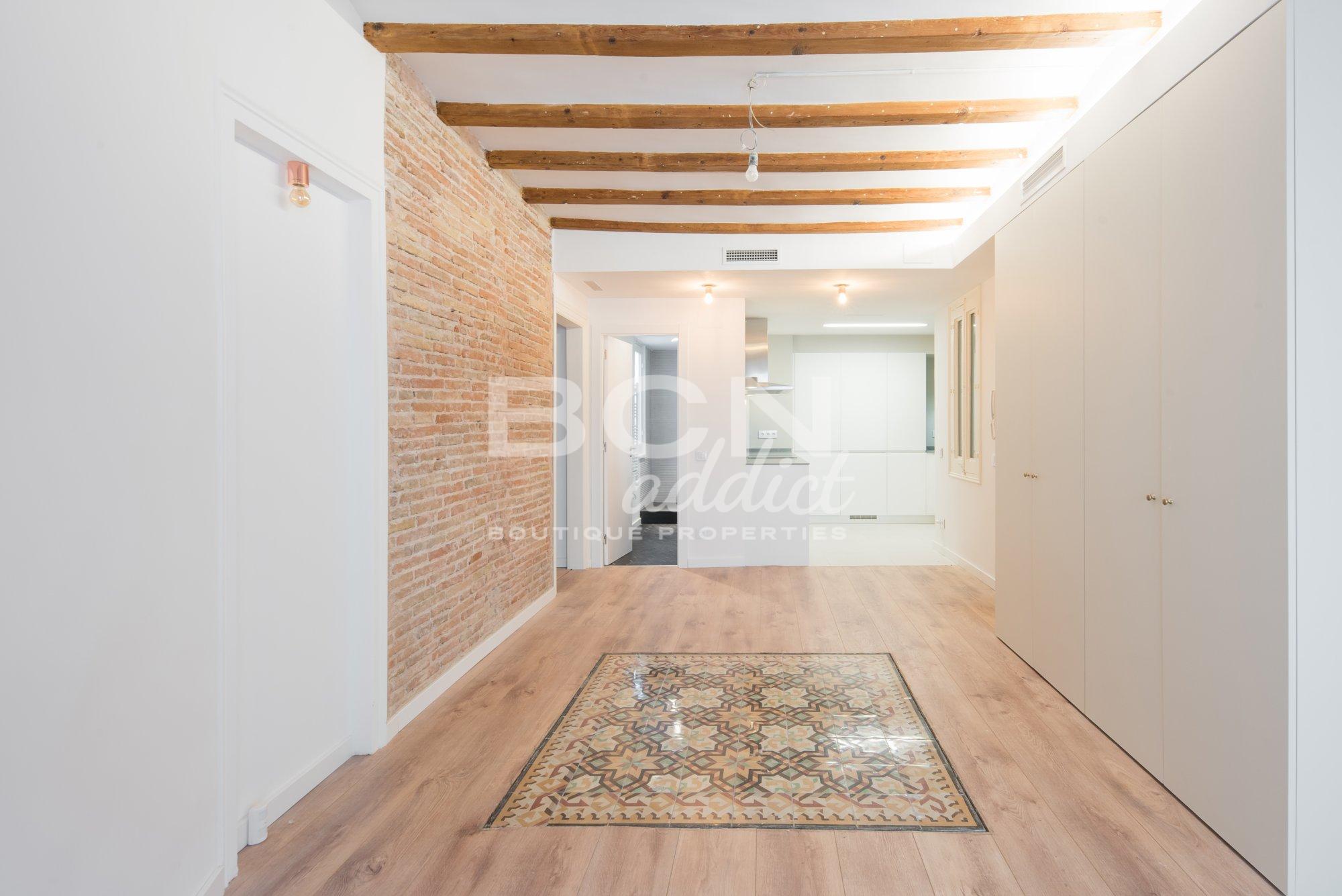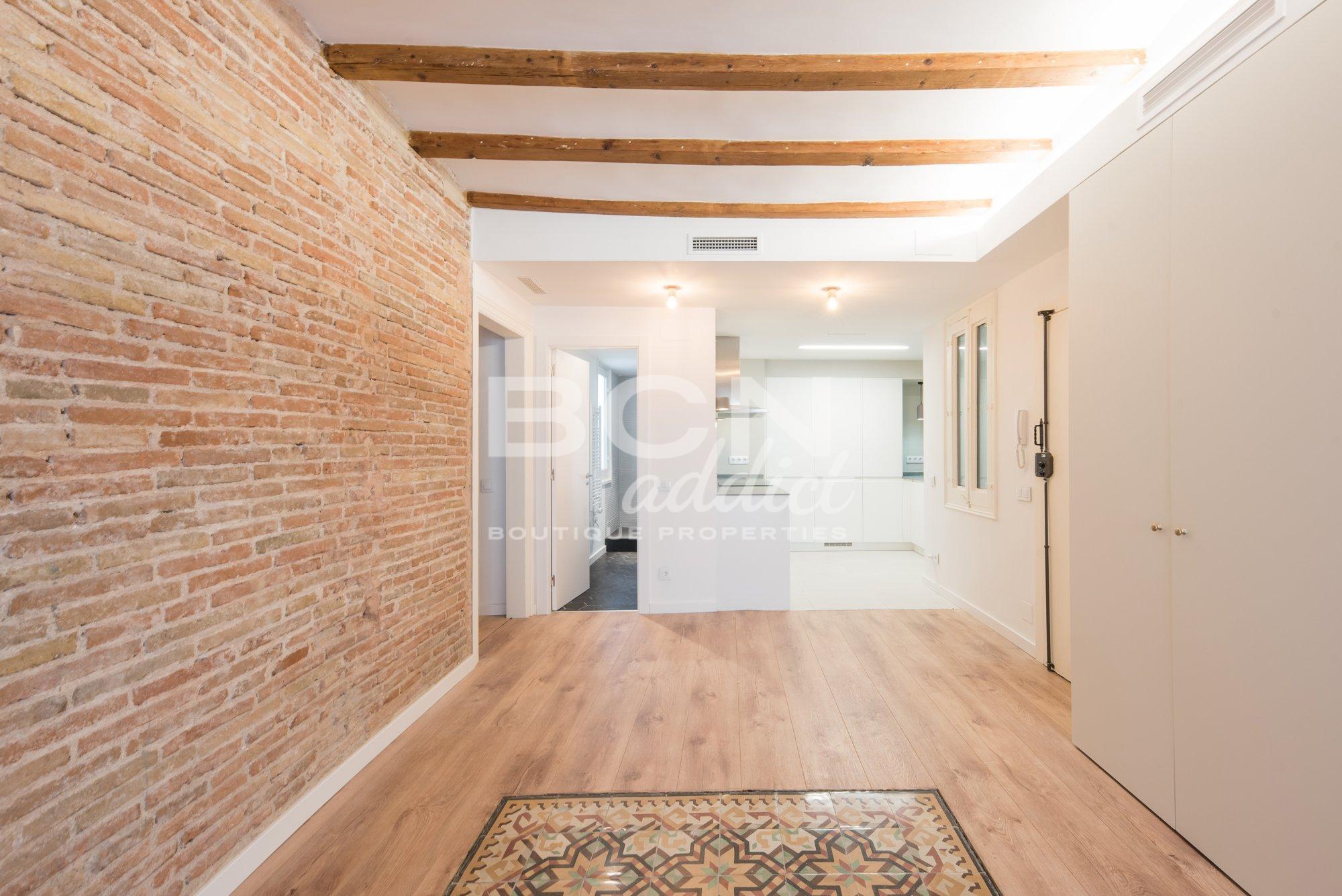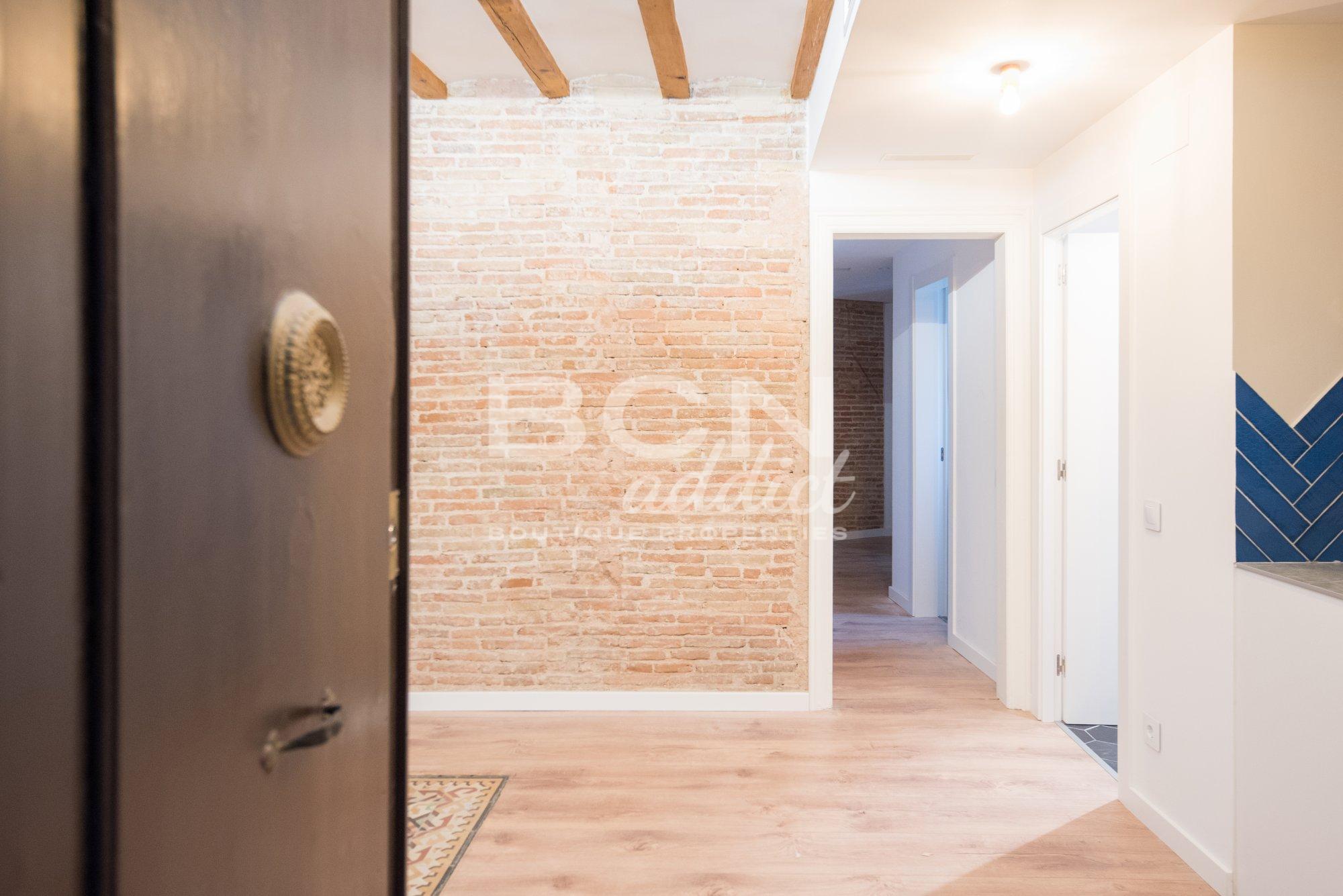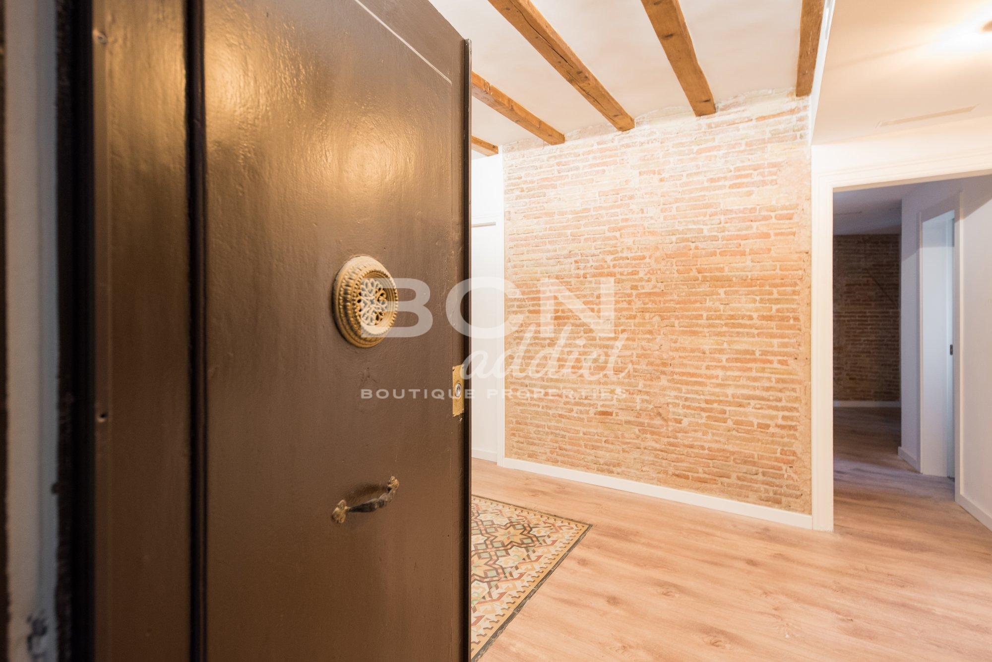 C'est une propriété haute et lumineuse avec 2 balcons : un dans le salon et un dans une des chambres. L'appartement combine des caractéristiques d'origine (carreaux hydrauliques, huisserie authentique en bois, murs en briques apparentes, plafonds voûtés en briques ou poutres apparentes) avec un intérieur moderne et des matériaux de qualité.