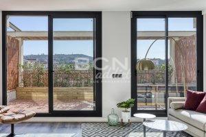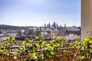 Dans le quartier très uppé de Sant Antoni, situé sur l’Avenida Mistral, proche de la Plaza España, se trouve ce magnifique denier étage avec vues spectaculaires, en exclusivité avec BCNaddict.