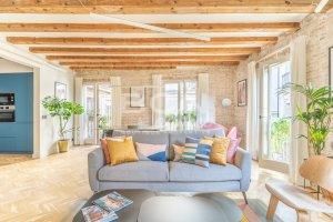 La renovación de alto nivel ha conservado los elementos originales del edificio: las paredes de ladrillo a la vista y las vigas de madera originales, combinándolas con detalles modernos y acabados de calidad que incluyen aire acondicionado central, parquet de roble colocado en espina de pescado, micro cemento en los baños, armarios empotrados en Cada habitación y ventanas de doble acristalamiento.