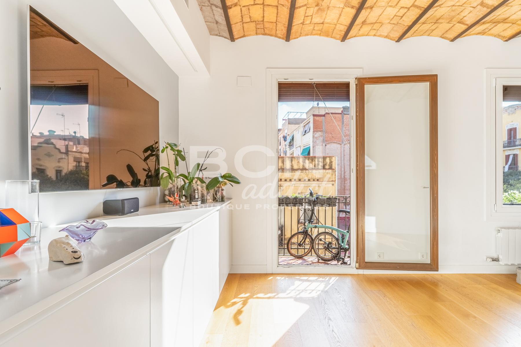 Rechercher Pueblo Seco, niché entre la montagne de Montjuic, le port et au centre du plus vieux quartier de Barcelone, vous trouverez ce bel appartement rénové de 71 m2, plein de soleil et ouvert, grâce à ses balcons, à chaque extrémité de celui-ci.