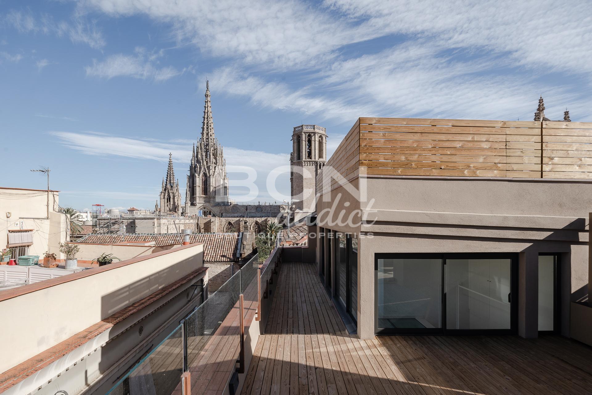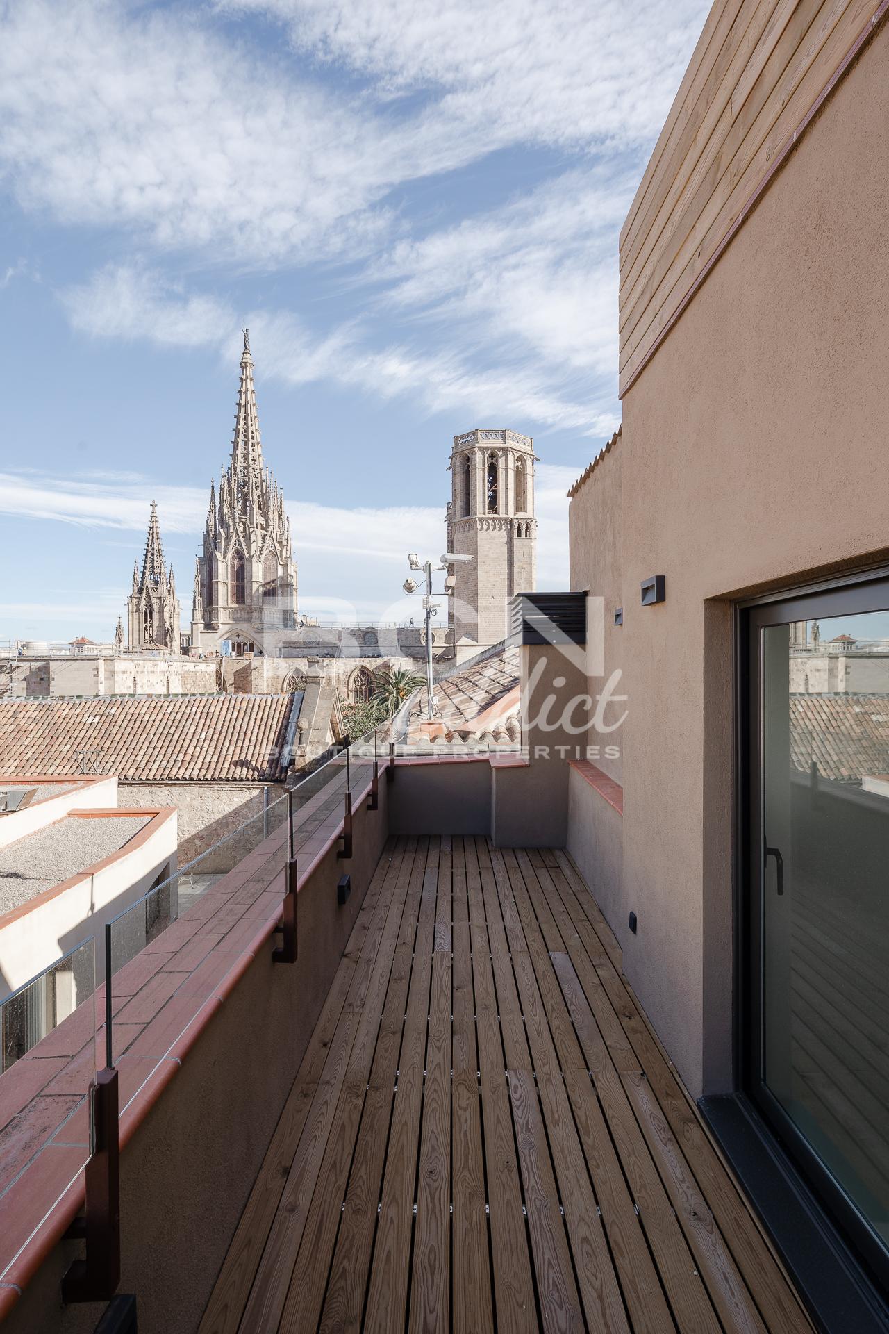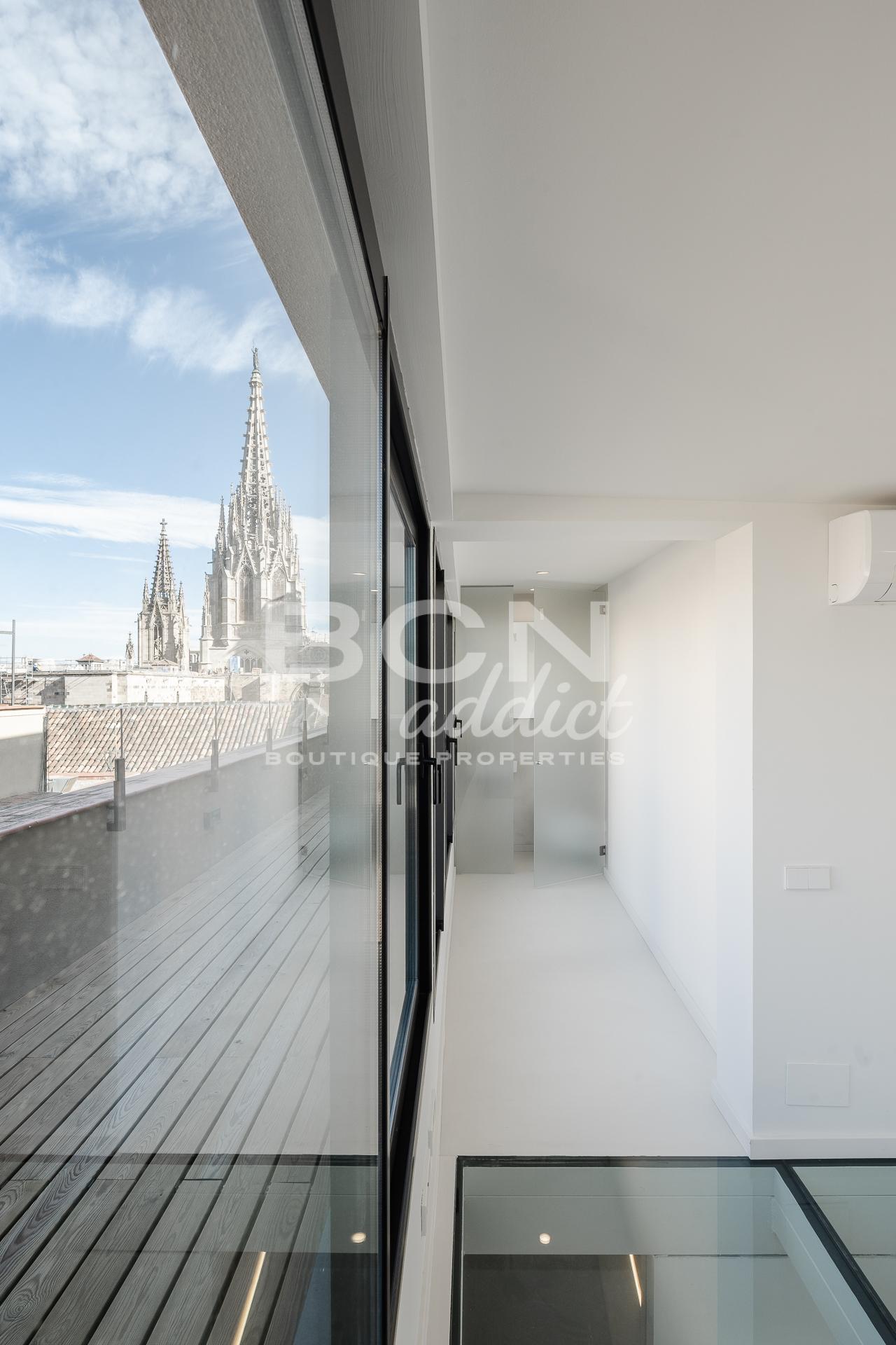Este edificio se encuentra justo en frente de la Catedral de Barcelona, en el corazón del barrio histórico de Barcelona, el Gotico. A pocos metros también de la famosa Plaça de Sant Felip Neri y Plaça de Sant Jaume. Zona animada con mercados y tiendas. Muchos mercados en el mercado de Sant Antoni & Boqueria están a la vuelta de la esquina para vivir una vida perfecta y viva.