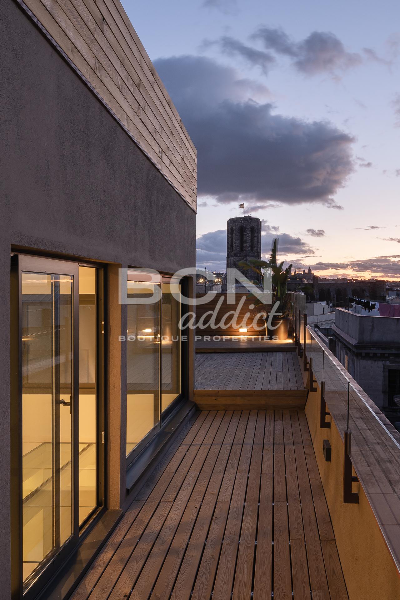 Rechercher El ático dúplex tiene 90 metros cuadrados con una increíble terraza de 30 metros cuadrados. Exquisitas vistas a la Catedral. Dispone de 2 habitaciones dobles, 1 despacho, 2 baños y una cocina abierta.