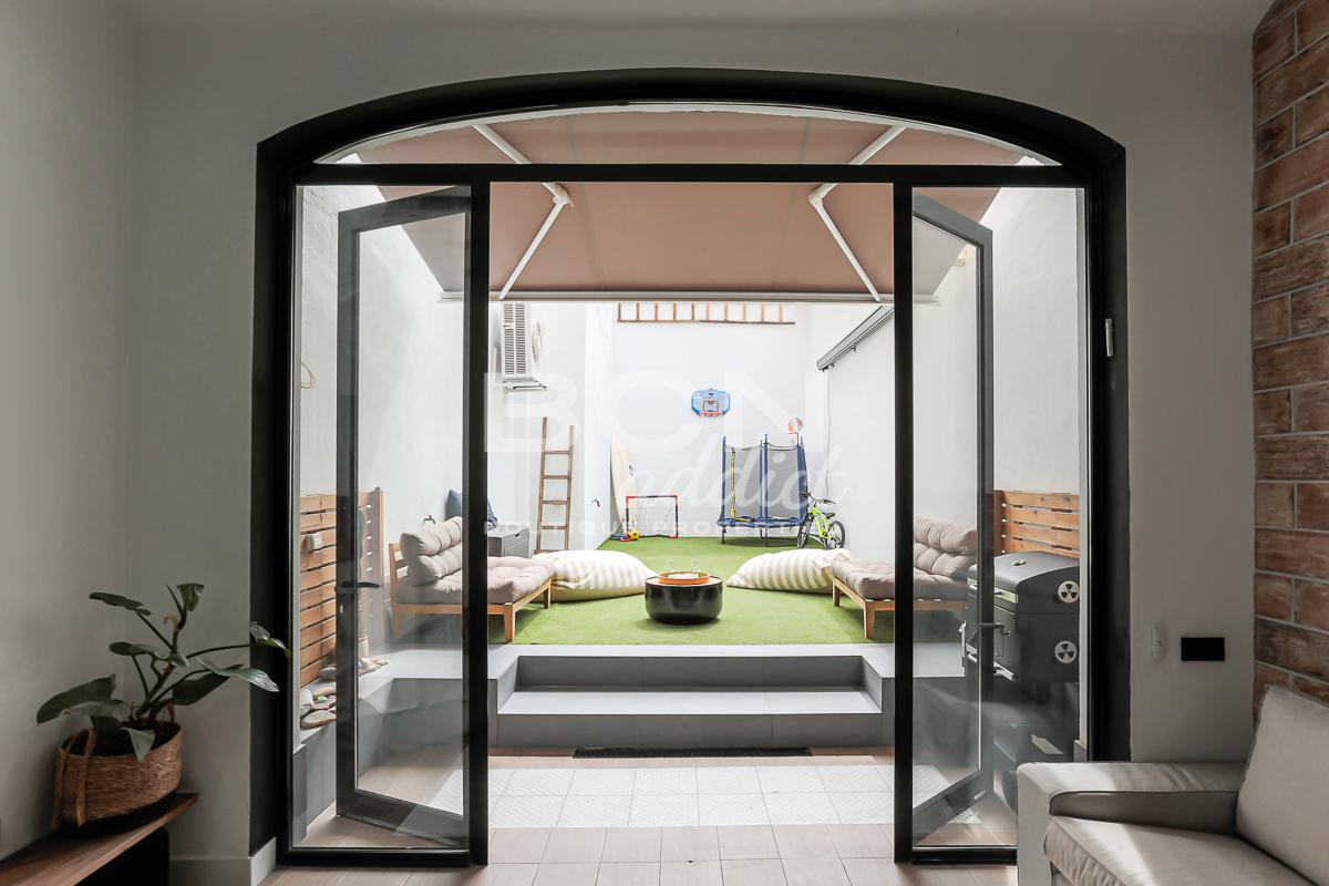 Situé au coeur de Sant Gervasi, l'appartement se trouve dans une rue piétonne résidentielle calme, au rez-de-chaussée d'un immeuble classique de 1940. La belle façade rosée de l'immeuble offre des éléments historiques bien entretenus tels que des dessins modernistes et des portes fenêtres avec balcon.
