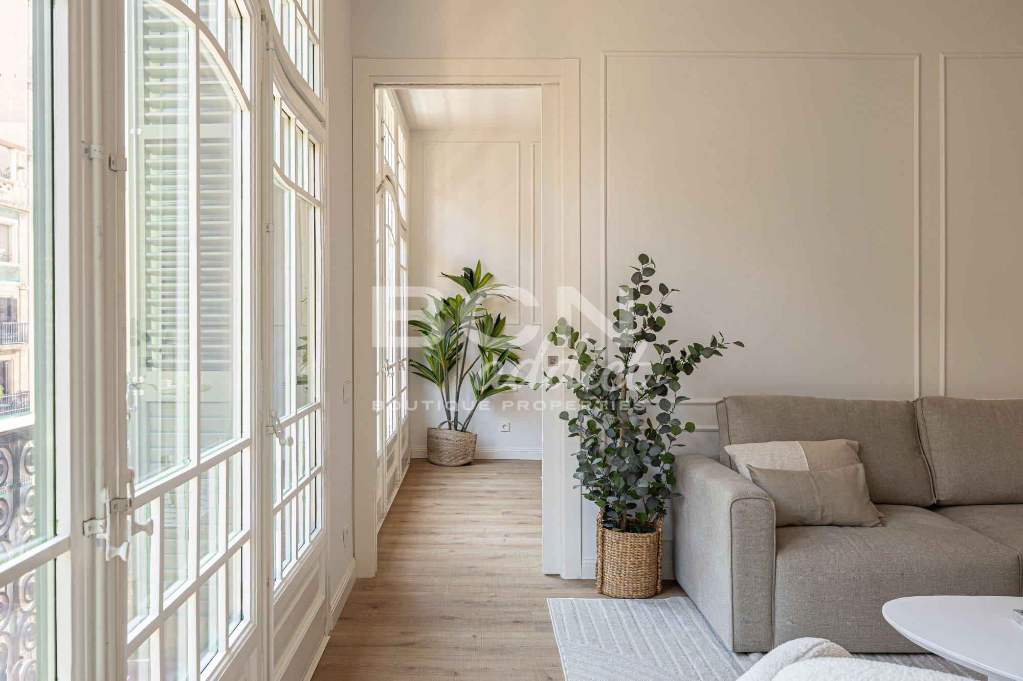À vendre, un magnifique APPARTEMENT ENTIEREMENT RENOVE de 124 m², dans un immeuble de 1922 classé comme site d'intérêt, de style noucentiste et connu sous le nom de Casa Lluís Guarro. Cet immeuble a été commandé par le fabricant de papier Lluís Guarro au célèbre architecte moderniste JOSEP PUIG I CADAFALCH, dont les œuvres les plus connues sont la Casa Amatller et la Casa de les Punxes.