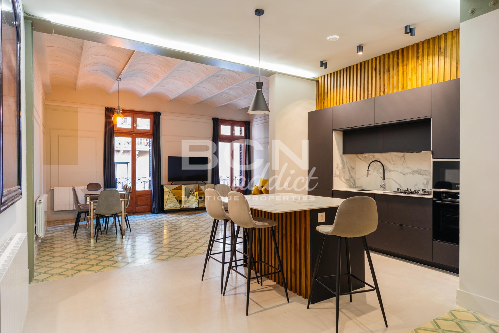 Rechercher Cette propriété unique fait partie d'une réhabilitation complète d'un immeuble historique de 1930 situé sur l'une des rues les plus recherchées de Barcelone. Le projet comprend un total de huit appartements méticuleusement conçus, et BCNaddict propose fièrement six de ces unités exceptionnelles à la vente.