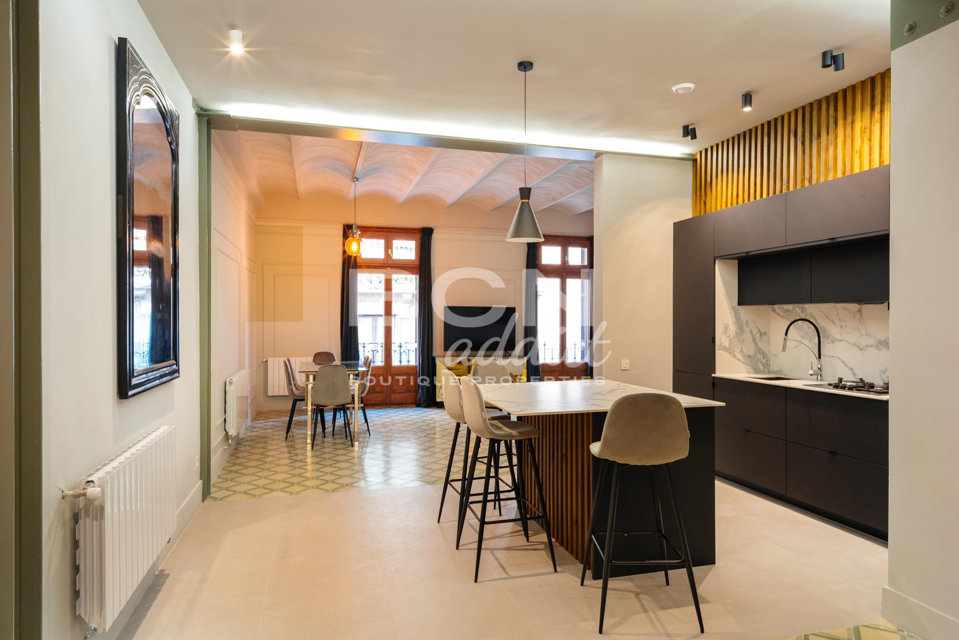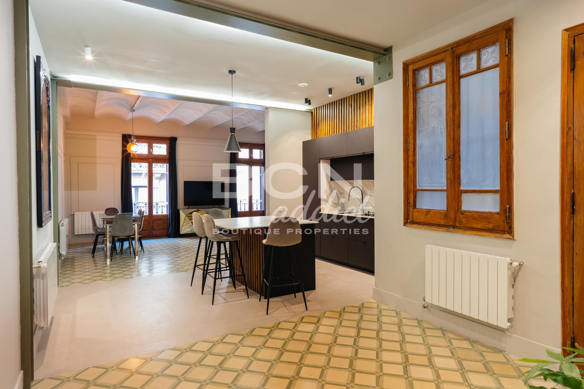 C'est une occasion rare d'acquérir un appartement dans un immeuble entièrement rénové, situé au cœur de Barcelone sur l'une de ses rues les plus prestigieuses.