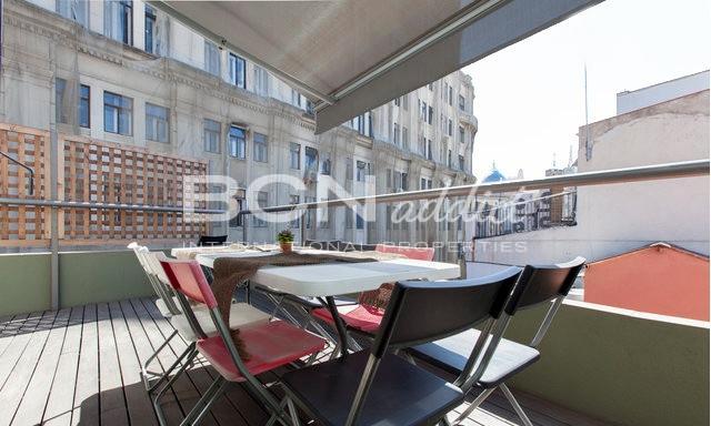 Cercar Loft en el barrio del Borne con una terraza y una vista a 180 grados a Santa Maria del Mar y a la Catedral. La terraza da la vuelta a todo el piso y esta totalmente reformada por un architecto frances con tekka, pérgola y ducha exterior.