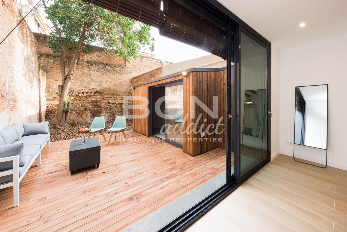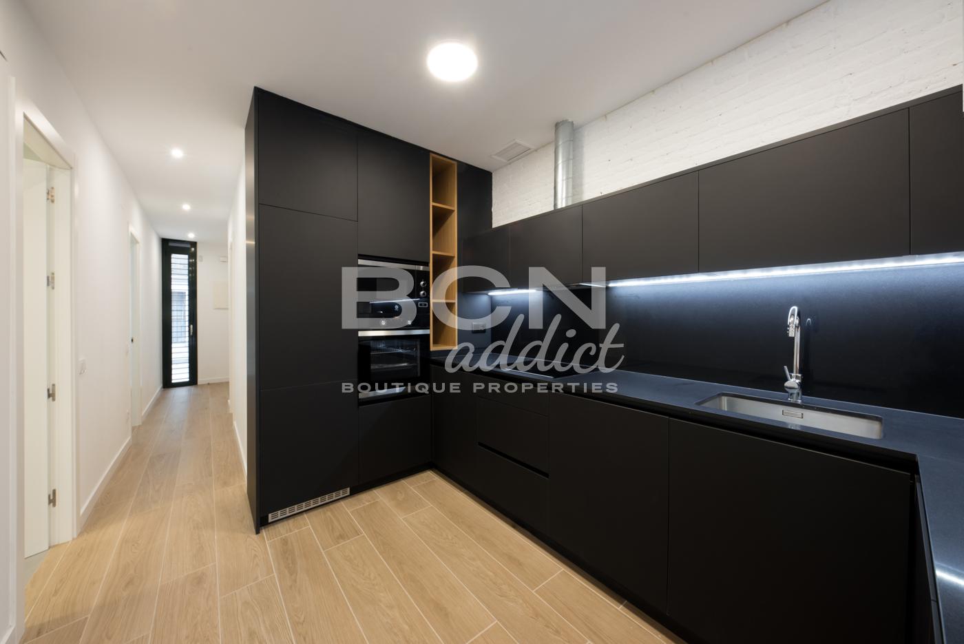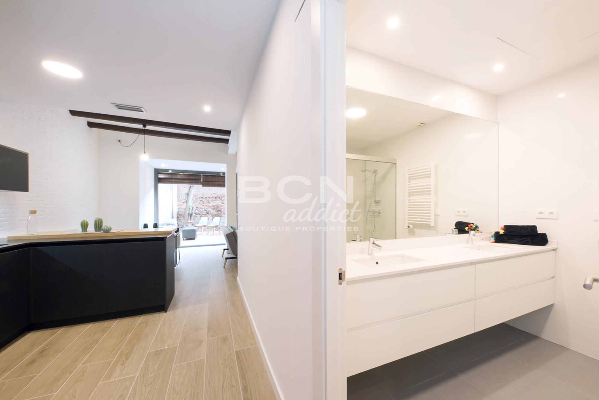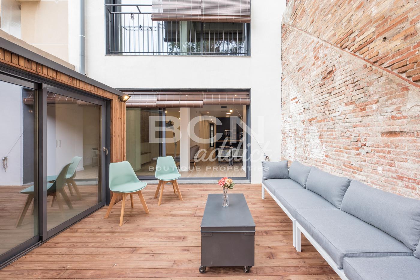 Esta es una oportunidad única para adquirir un apartamento renovado con una sala de estar contemporánea y una amplia terraza en el distrito de Barcelona.