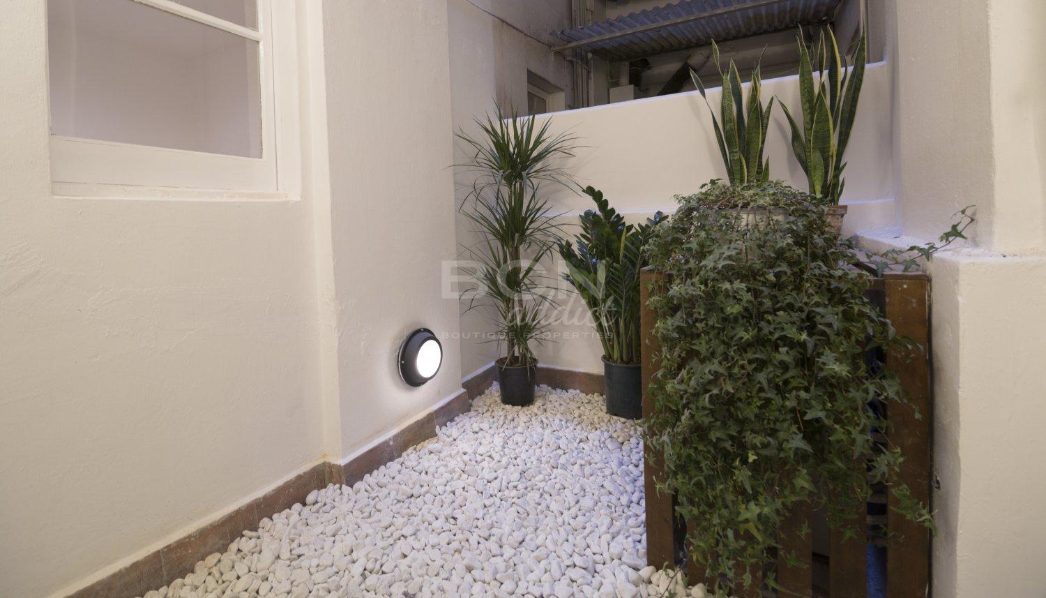 Este piso recientemente renovado cuenta con acabados de alta calidad: doble acristalamiento de aluminio, parquet autentico o de roble nuevo, baldosas hidráulicas en algunas partes del piso, aire acondicionado con splits (calor y frio) en las habitaciones dobles y en el salón, electrodomésticos como refrigerador, lavaplatos, vitro-cerámica y horno integrados en los muebles empotrados de la cocina. El sistema eléctrico y del agua en el piso han sido cambiados por completo.