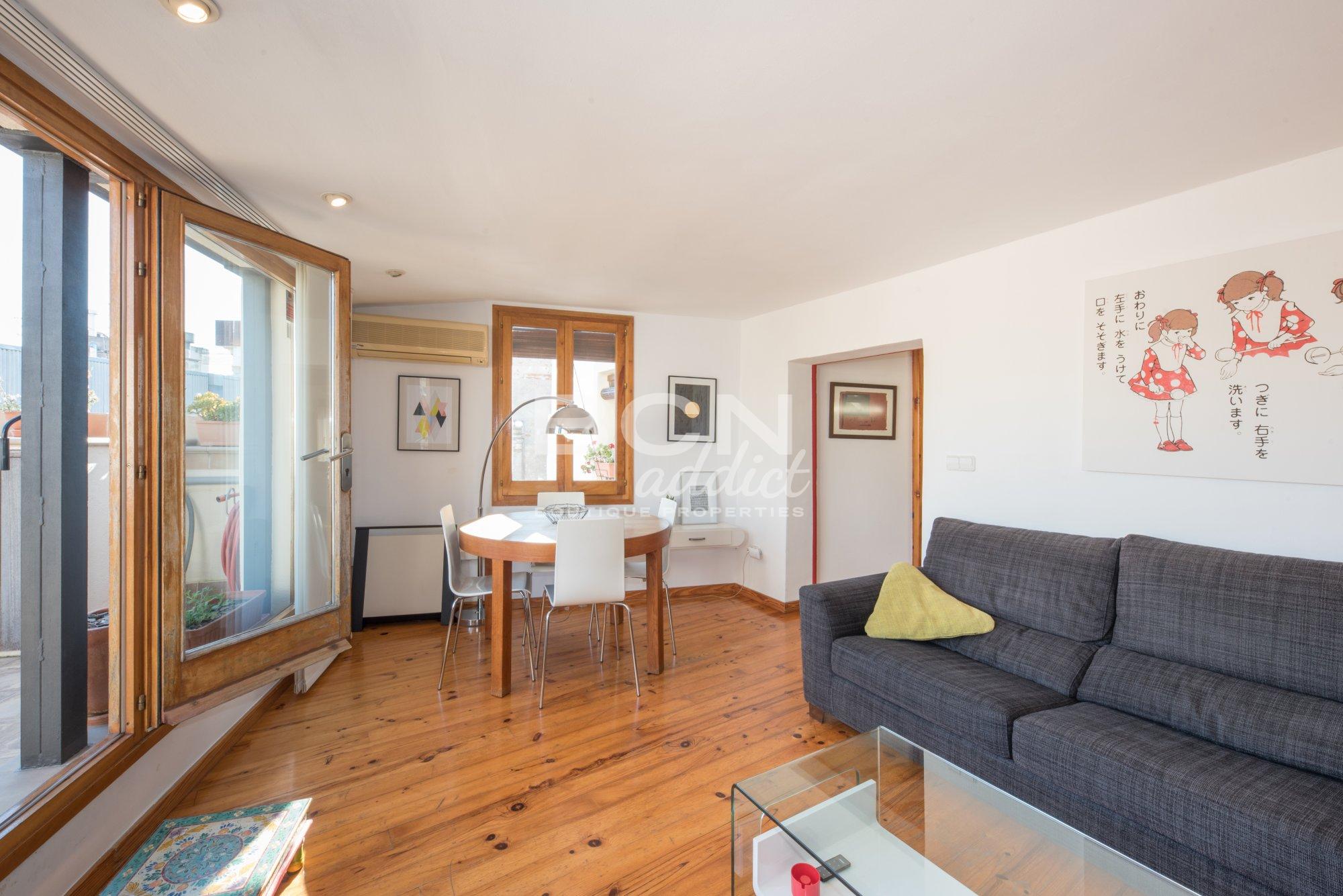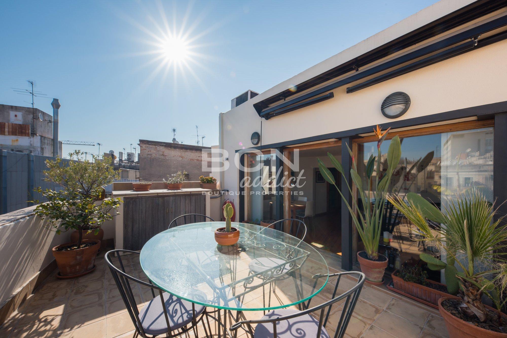 Este Ático está en buen estado. Es una oportunidad única de adquirir un ático con terraza en el mismo nivel, en el corazón de la ciudad vieja de Barcelona.