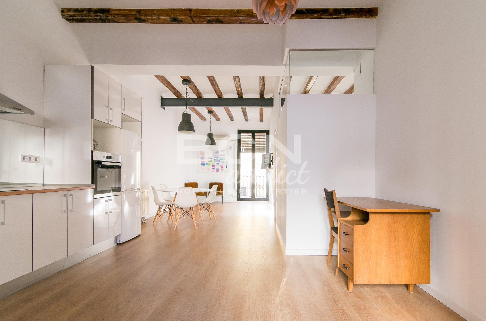 El piso, exclusiva de BCNaddict, se encuentra en la calle Salva, a escasos metros de la Avenida Paralelo. El techo es muy alto. Perfectamente comunicado con el resto de la ciudad por metro y autobús, el piso ofrece un habitación vestidor, un salón comedor con cocina abierta y equipada, cuarto de baño completo con plato de ducha y cuarto de lavandería en 55 metros cuadrados. Está equipado con calefacción y aire acondicionado para su confort ademas de tener ventanas de doble cristal.