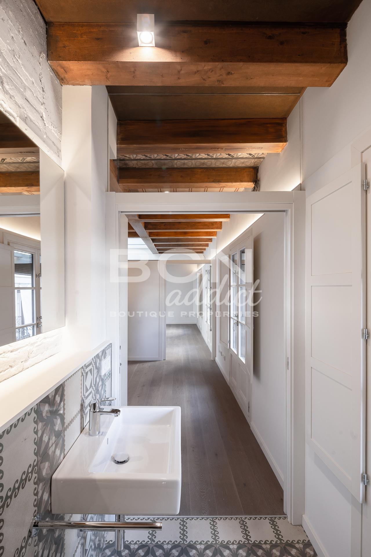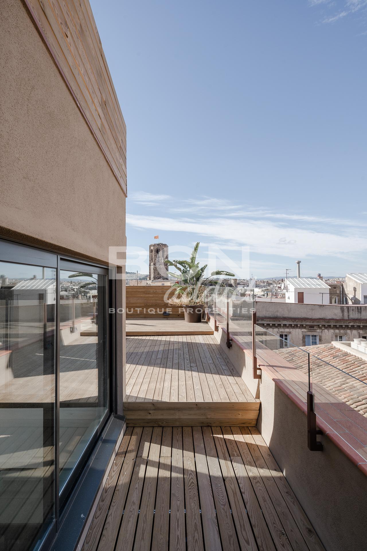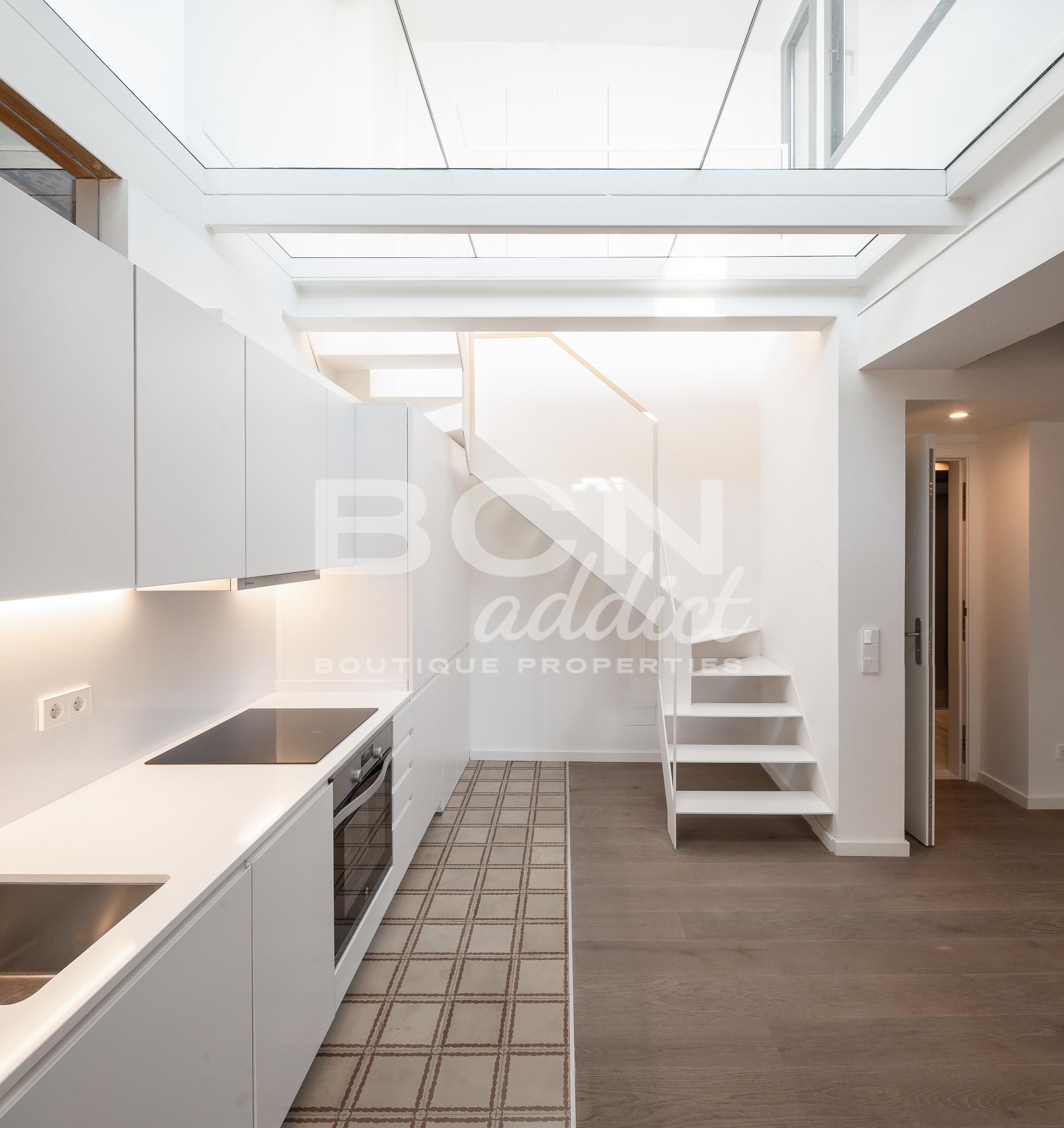 Cercar El ático dúplex tiene 90 metros cuadrados con una increíble terraza de 30 metros cuadrados. Exquisitas vistas a la Catedral. Dispone de 2 habitaciones dobles, 1 despacho, 2 baños y una cocina abierta.